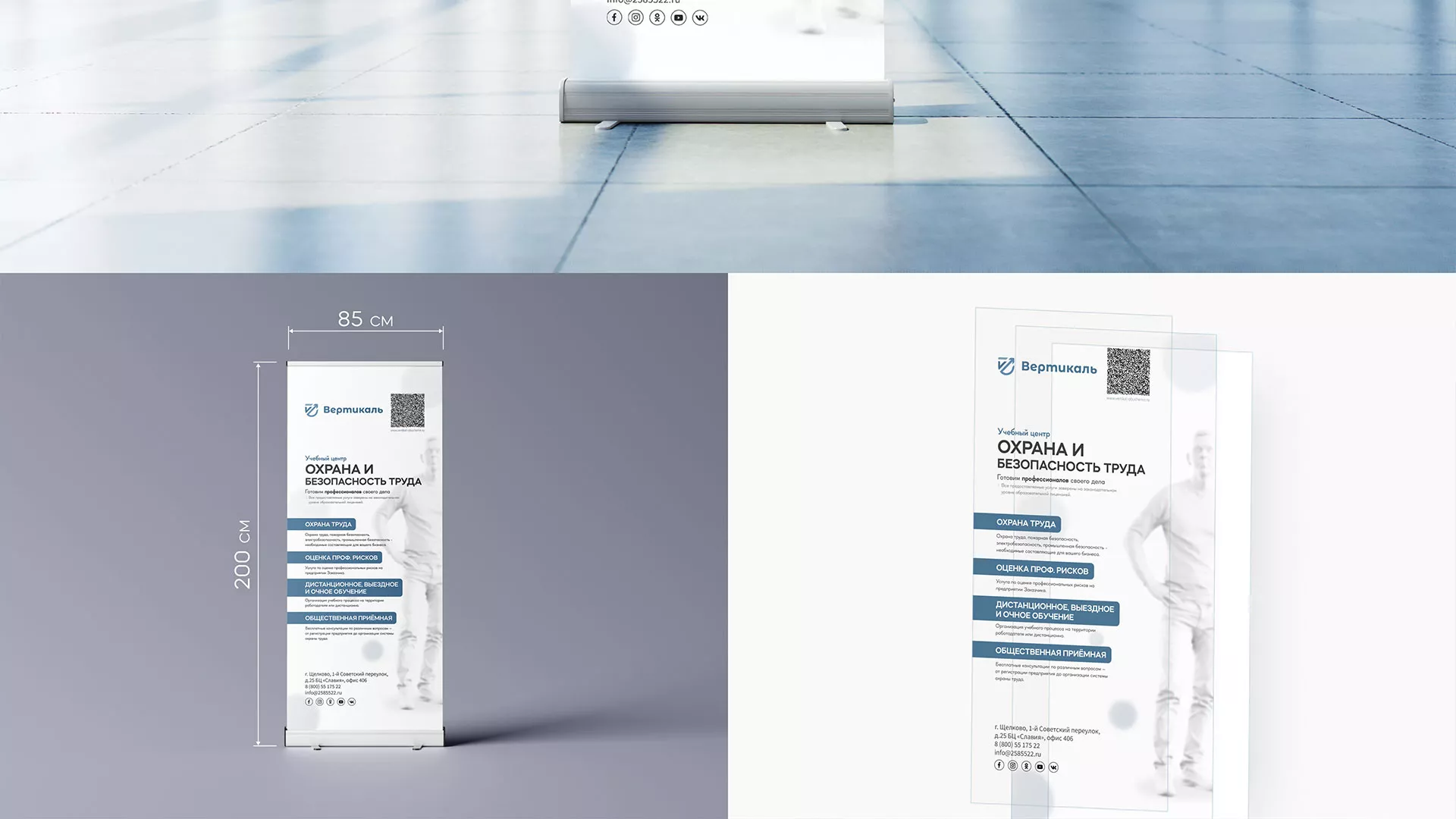 После разработки фирменного стиля и создания сайта, мы приступили к разработке дизайн-макета ролл-ап стенда в Шахтёрске для учебного центра «Вертикаль».