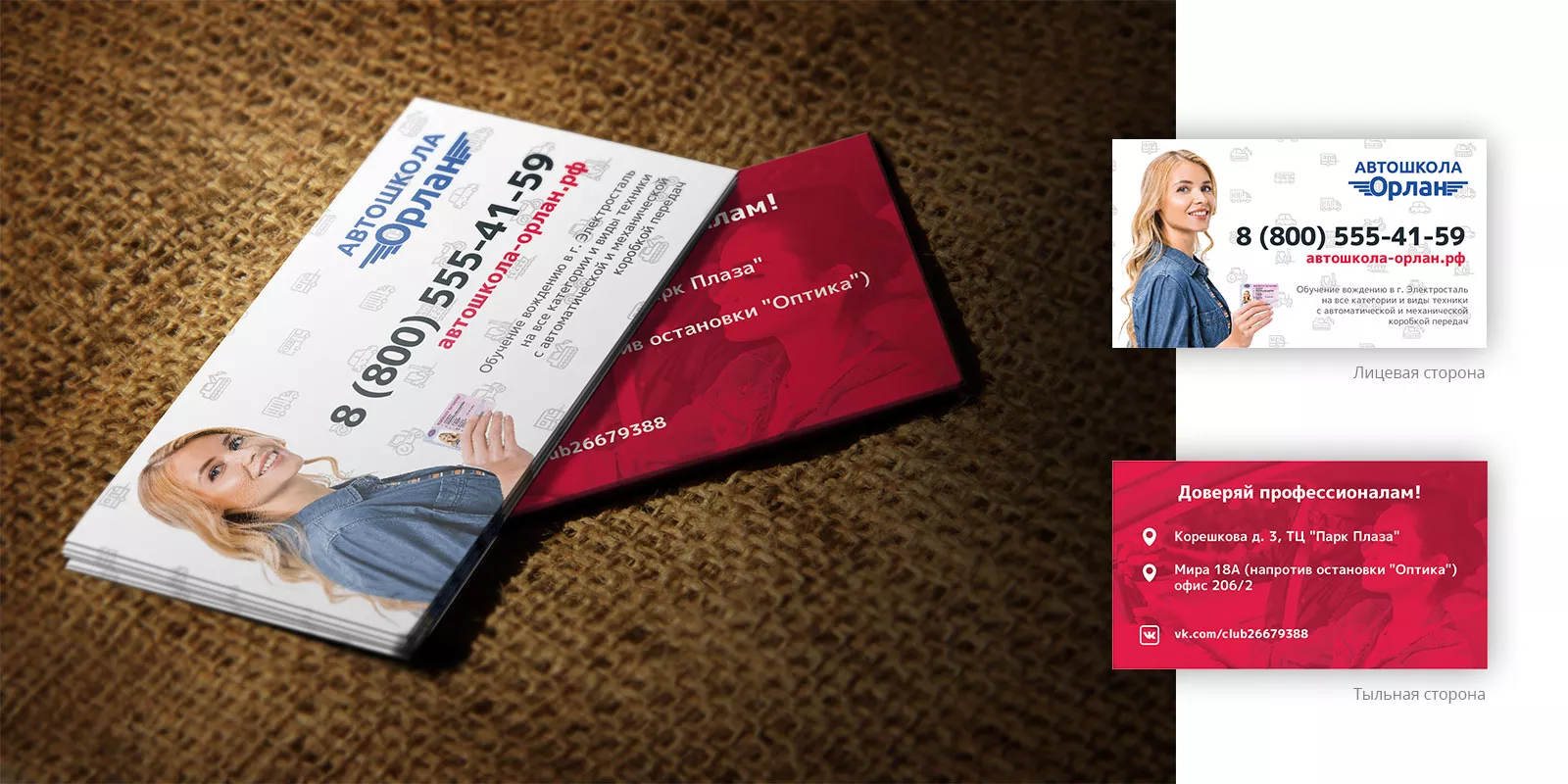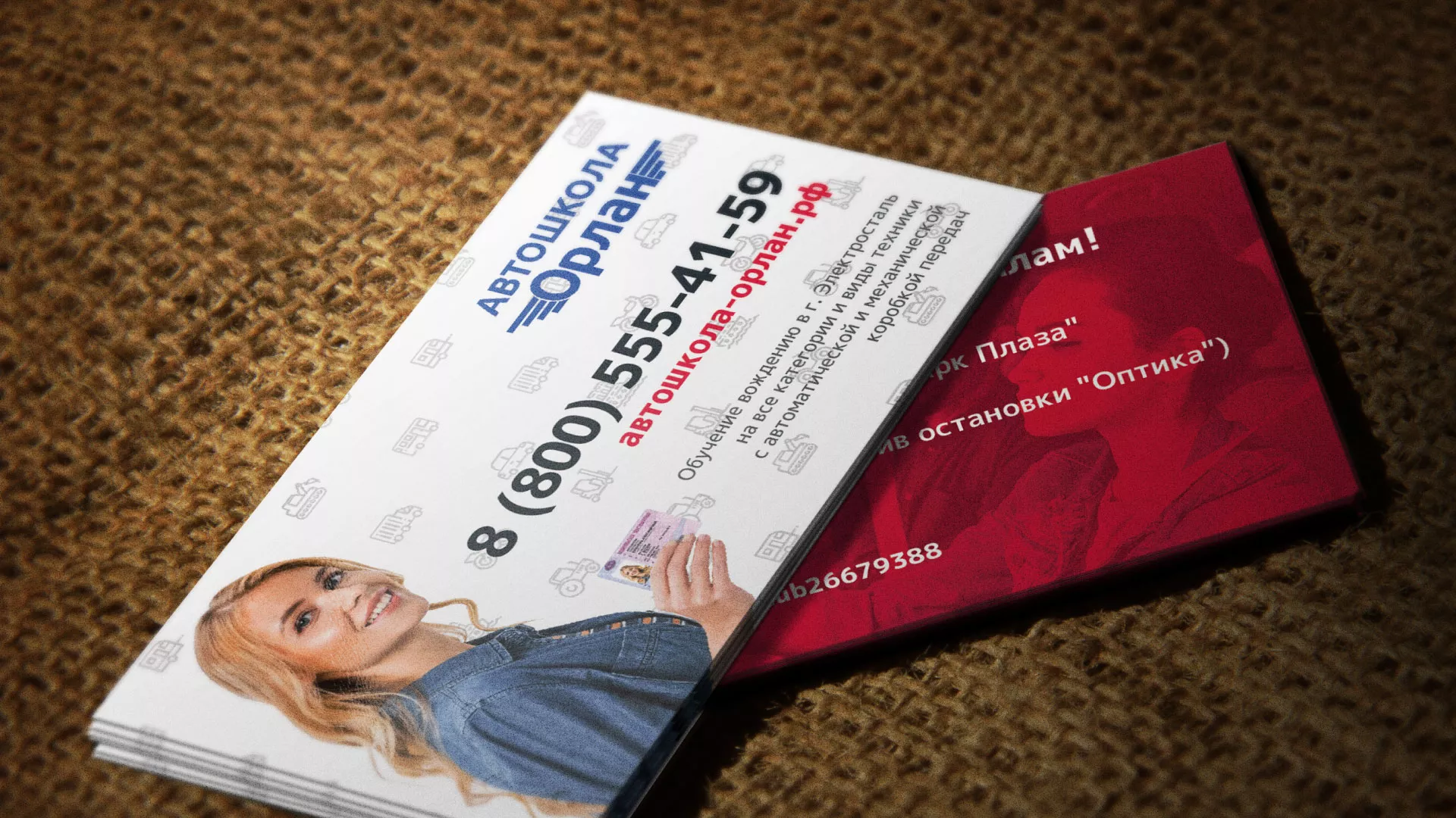 Разработка рекламных визиток автошколы «Орлан» в Шахтёрске