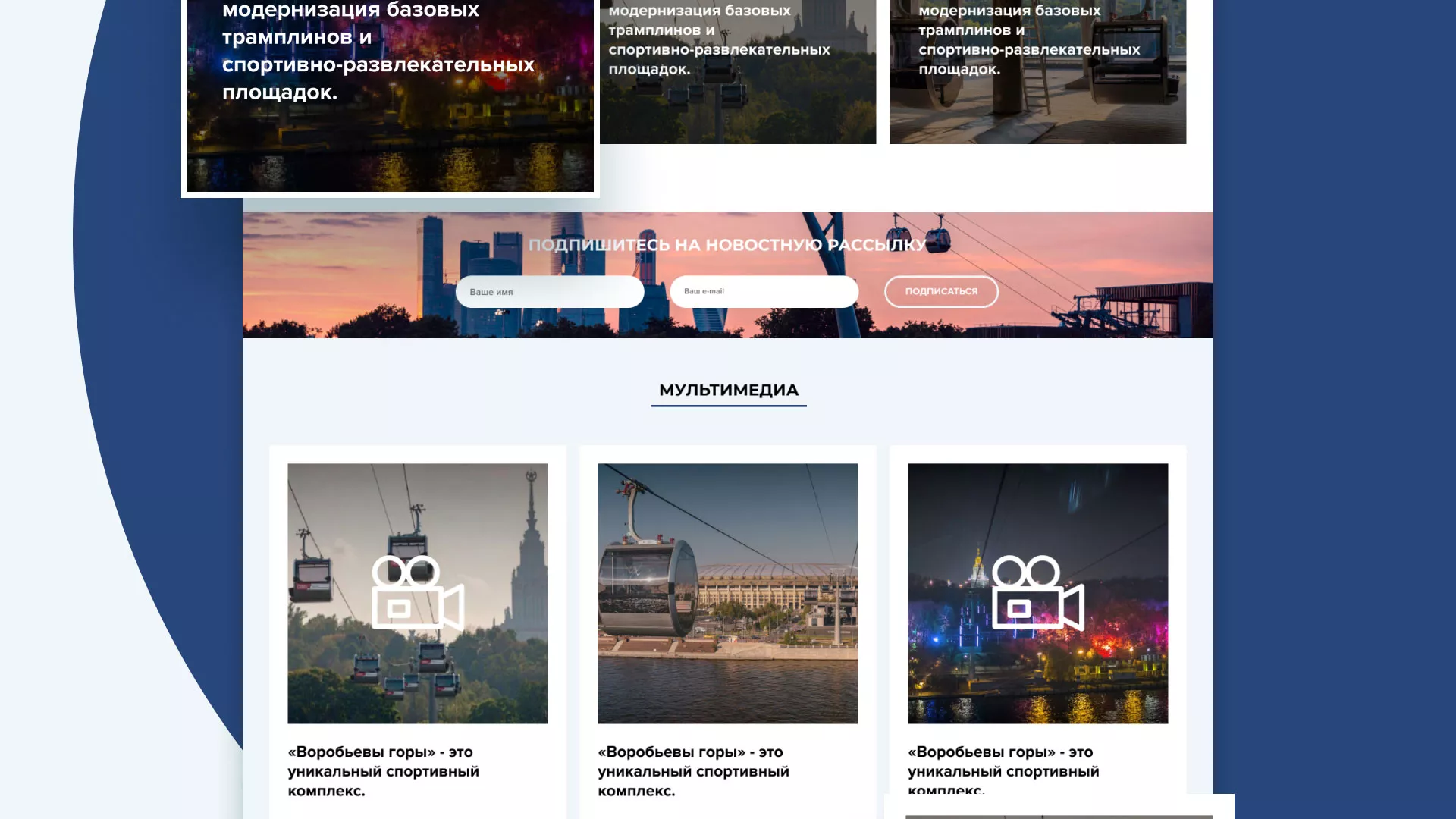 Разработка сайта в Шахтёрске для спортивно-развлекательного комплекса «Воробьёвы горы»