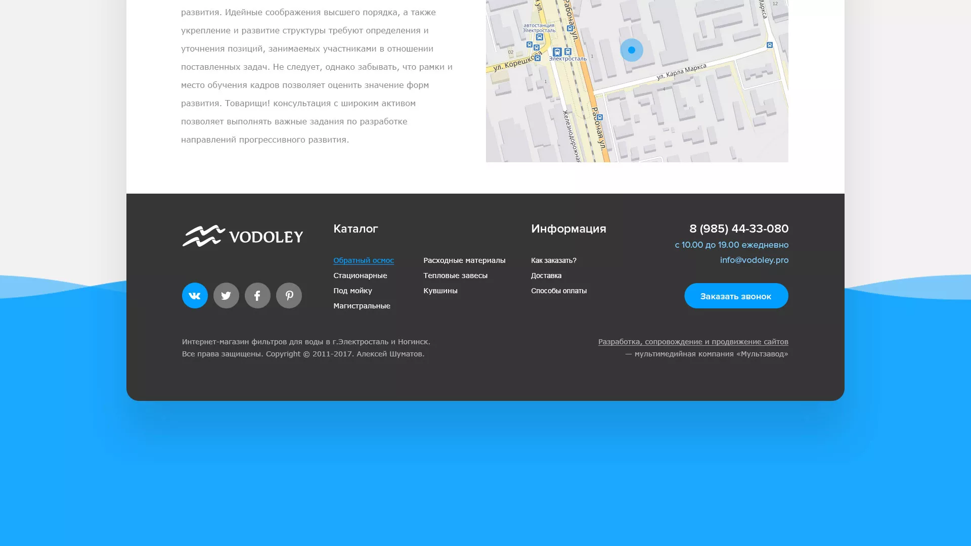 Работать с компанией «Мультзавод» удобно и легко, поэтому, если Вам требуется создание аналогичного сайта по продаже и установке фильтров очистных сооружений в Шахтёрске, мы предложим Вам действительно выгодные цены и удобные условия сотрудничества. Мы обещаем, что вложенные в разработку сайта деньги окупятся и Вы получите современный рабочий интернет-магазин!
